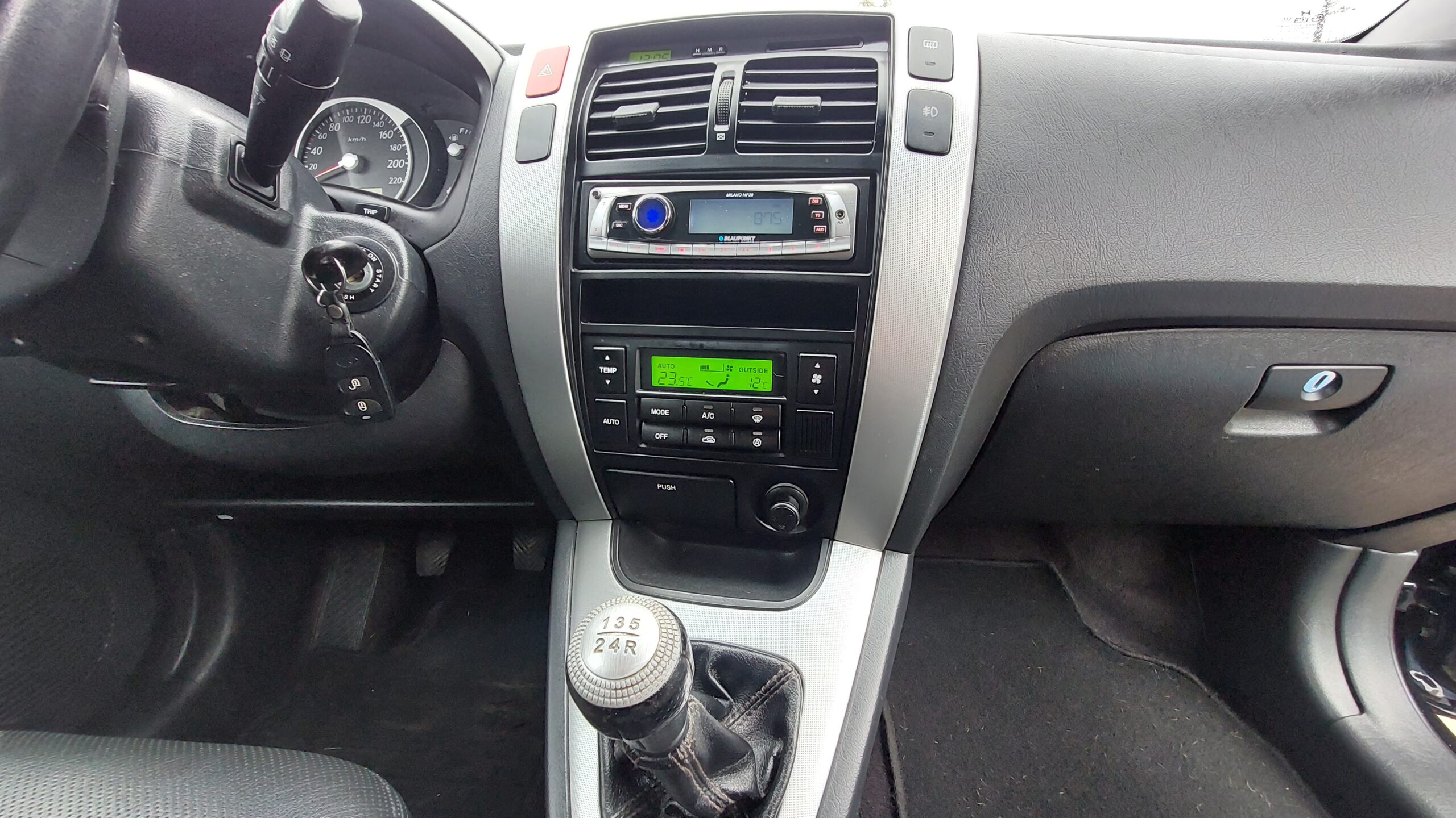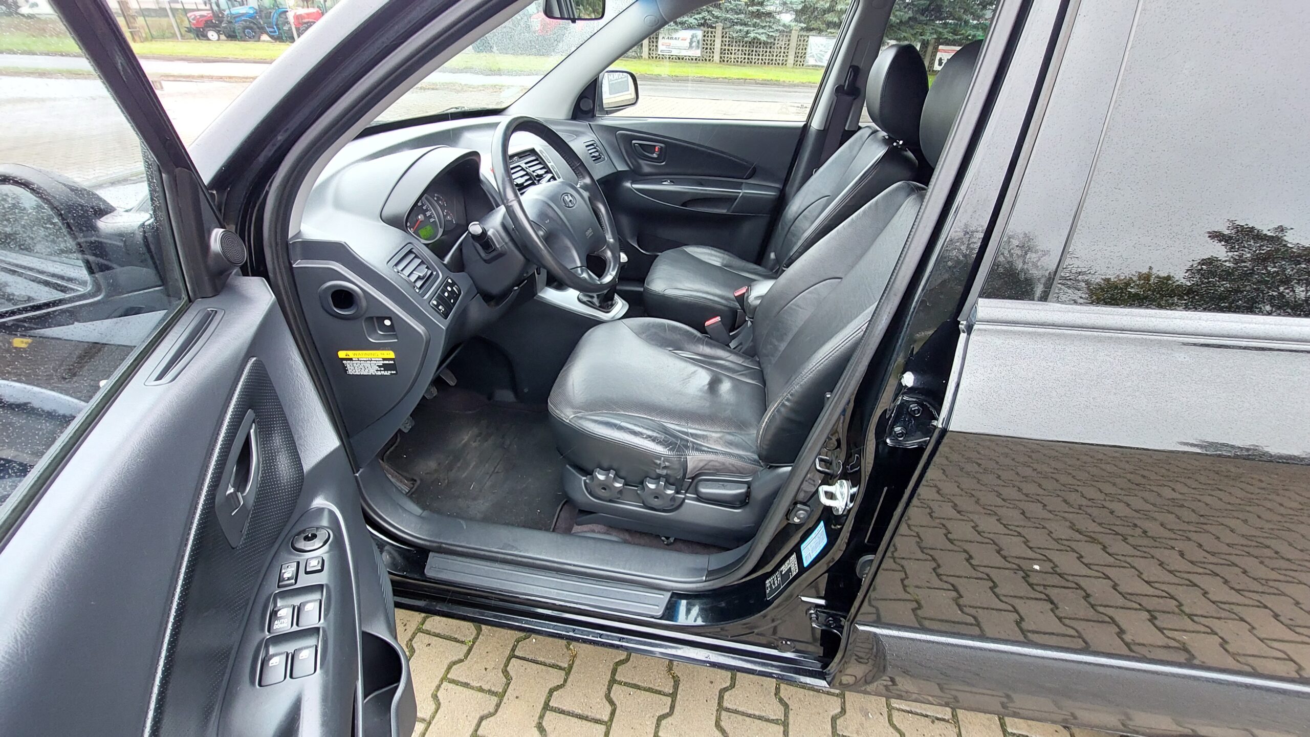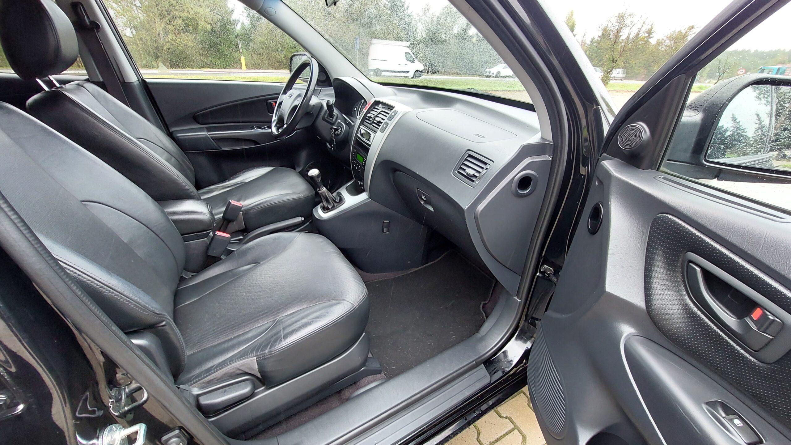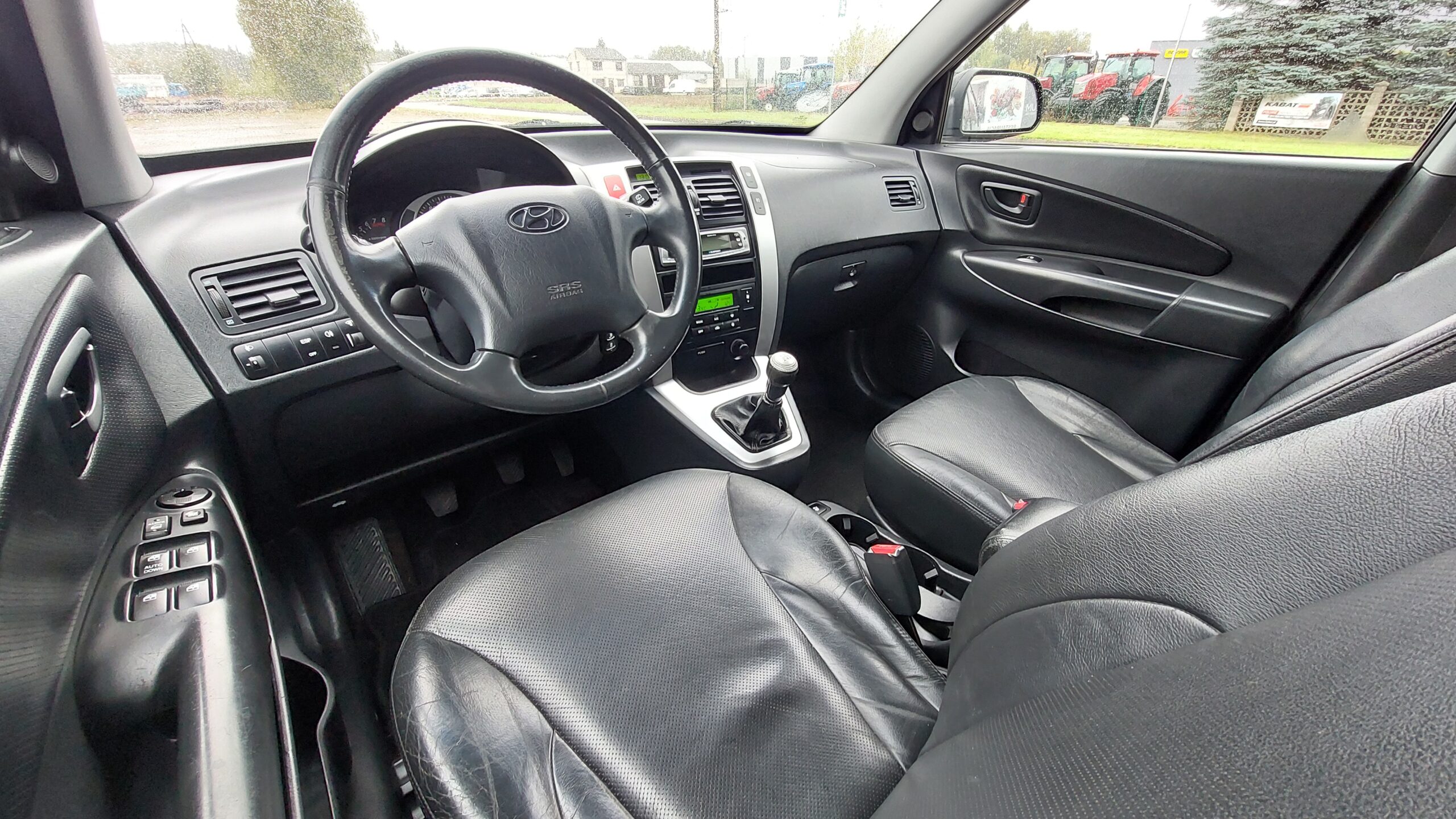 Ten egzemplarz Hyundai Tucson, generacji I (2004-2010), to połączenie stylowego wyglądu i praktyczności. Jest bezwypadkowy, co potwierdza jego dobry stan techniczny. Wyposażenie obejmuje między innymi: radio fabryczne z CD i MP3, klimatyzację automatyczną, podgrzewane fotele, skórzaną tapicerkę, elektryczne szyby i lusterka, centralny zamek oraz wspomaganie kierownicy. Bezpieczeństwo zapewniają systemy ABS, ESP, ISOFIX oraz liczne poduszki powietrzne. Dodatkowo auto posiada komputer pokładowy, relingi dachowe, przyciemniane szyby oraz aluminiowe felgi z oponami zimowymi.